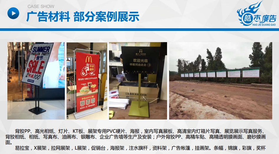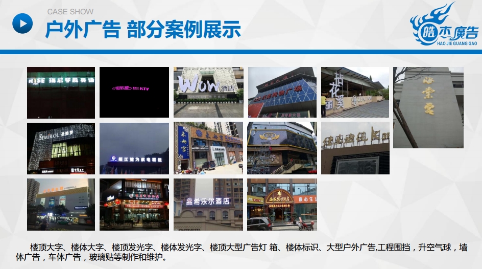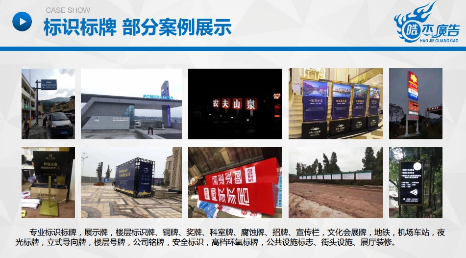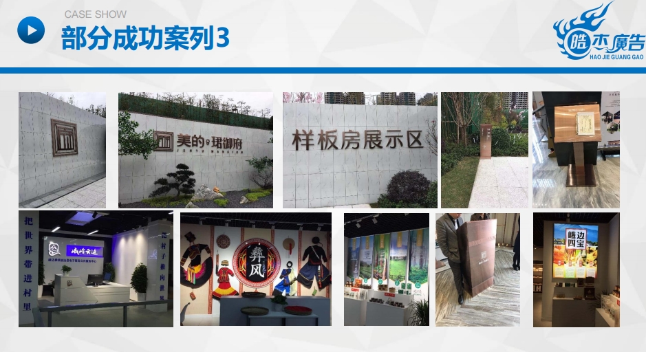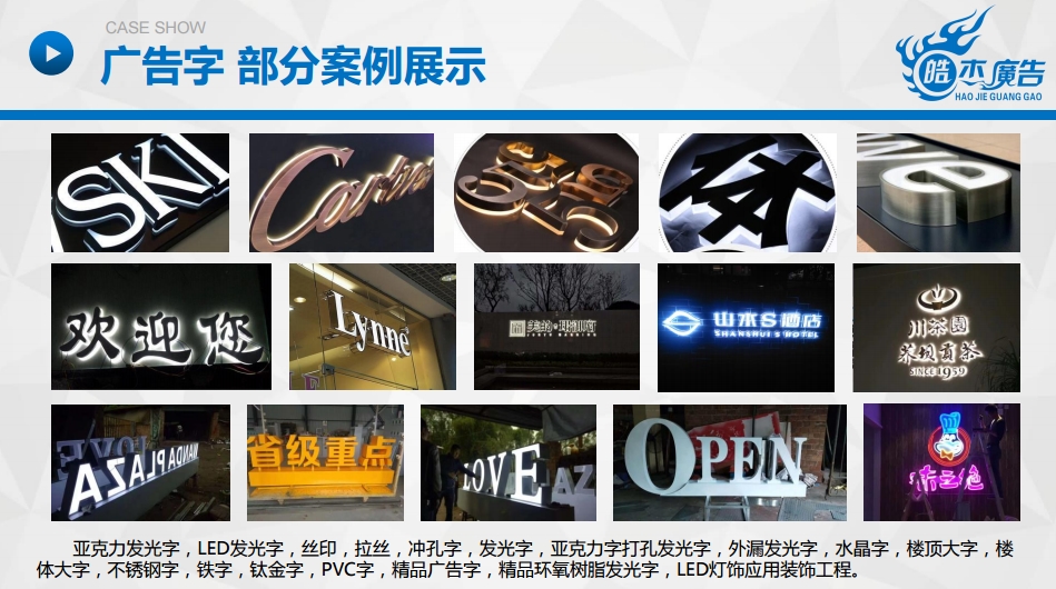 樂(lè)山市信杰廣告有限公司是一家是集設(shè)計(jì)、制作、代理、發(fā)布為一體的專(zhuān)業(yè)化廣告服務(wù)商。專(zhuān)業(yè)從事各類(lèi)發(fā)光字生產(chǎn)、亮化工程施工、導(dǎo)視牌制作施工、UV平板噴印、寫(xiě)真噴繪、會(huì)務(wù)會(huì)場(chǎng)布置、各類(lèi)慶典儀式、展覽工程和戶(hù)內(nèi)外廣告制作項(xiàng)目。本公司能為不同領(lǐng)域的客戶(hù)在廣告宣傳方面提供一站式服務(wù)。公司注冊(cè)資金200萬(wàn)元,擁有員工40余人,各類(lèi)專(zhuān)業(yè)性技術(shù)人才30余人。公司主要設(shè)備包括大型激光切割機(jī)、激光焊字機(jī)、開(kāi)槽機(jī)、大型UV平板打印機(jī)、數(shù)碼雕刻機(jī)、噴繪機(jī)、戶(hù)內(nèi)外寫(xiě)真機(jī)等。公司秉承“嚴(yán)……